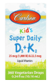 Витамин D3+K2 для детей в каплях, 1000 МЕ и 22,5 мкг, Kid's Super Daily D3+K2, Carlson, 10.16 мл