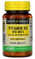 Витамин K2 + Витамин D3, Vitamin K2 Plus Vitamin D3, Mason Natural, 100 таблеток